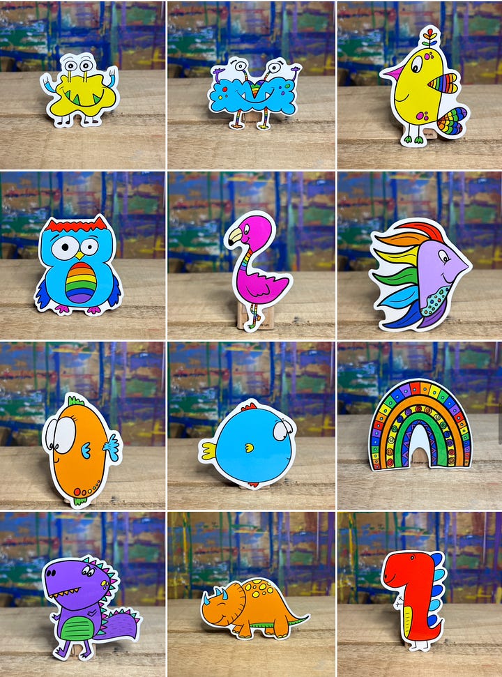 The cost is a one time fee of $60 dollars. That is basically a 50% off price as each card sales for $6 and the stickers are 4. To buy those at the market or on my site every month would $120!